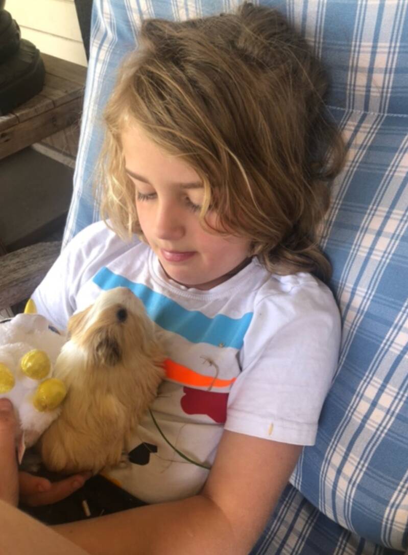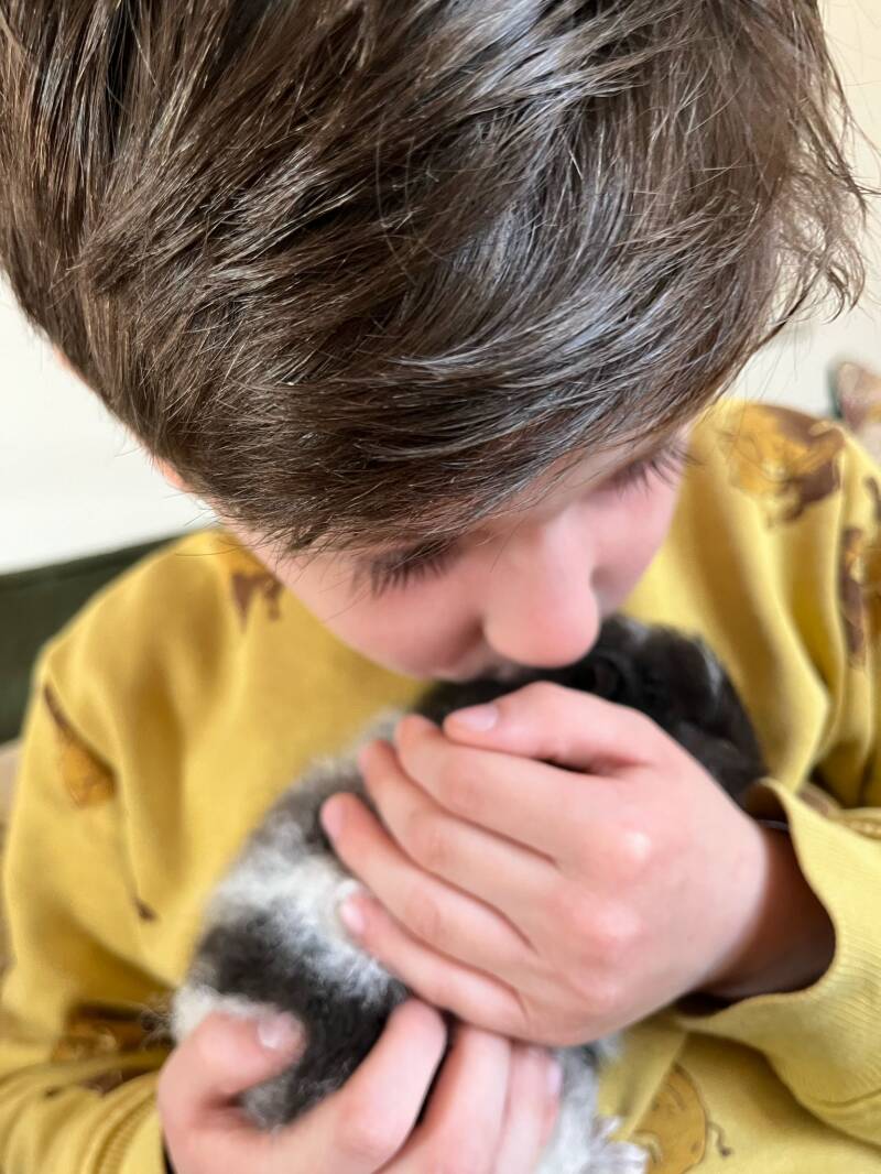 OLIVIER ZIJN CAAFJE WAS OVERLEDEN EN ZIJN MOEDER HEEFT OTJE VOOR HEM GEKOCHT. HIJ IS ER ONTZETTEND BLIJ MEE, HEEFT ZELFS EEN WELKOMSTBORD VOOR HET RAAM GEMAAKT. BEELDEN SPREKEN VOOR ZICH